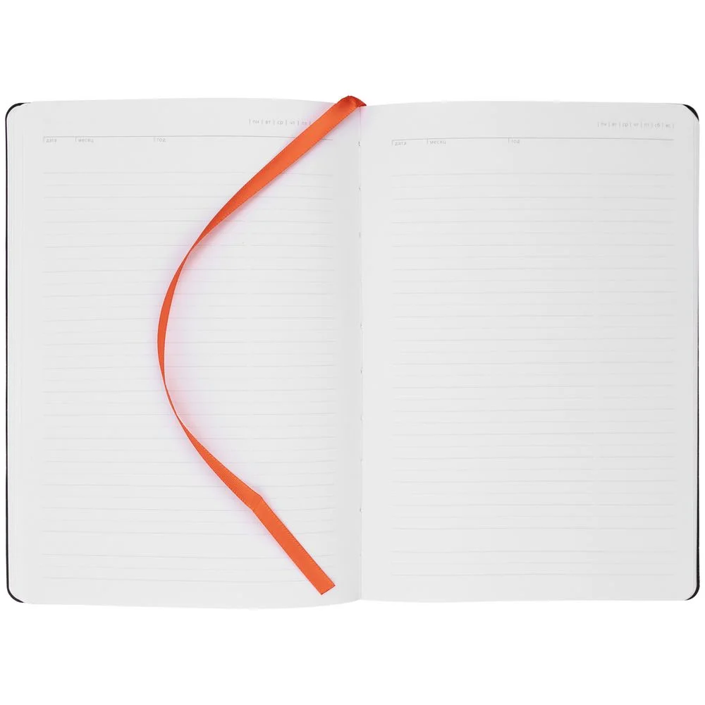 Ежедневник с гибкой обложкой, выполнен из материала Latte, оранжевый, дополнен ляссе в цвет обложки.