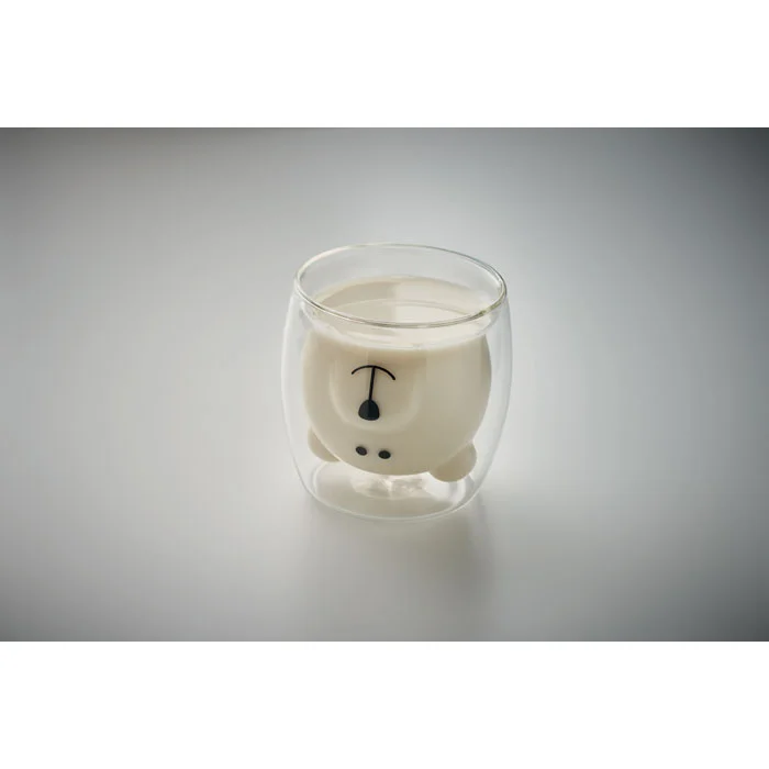 Кружка с двойными стенками из боросиликатного стекла с забавной медвежьей мордочкой и бамбуковой крышкой. Объем: 260 мл.