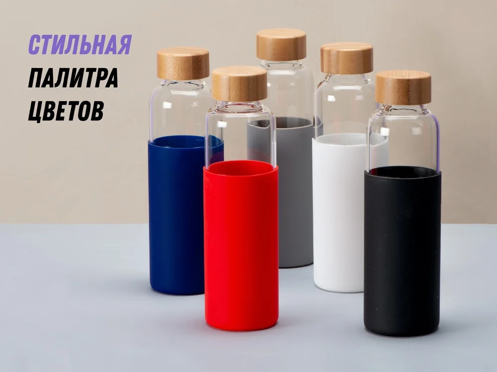 - Стеклянная бутылка для воды в силиконовом чехле Refine